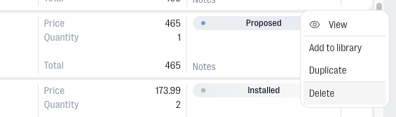 A rejected product will be greyed out in your spec sheet and won’t be included in the overall project budget. If you still need to remove it though move to the right hand side of the product item, click on the three dots and Delete.