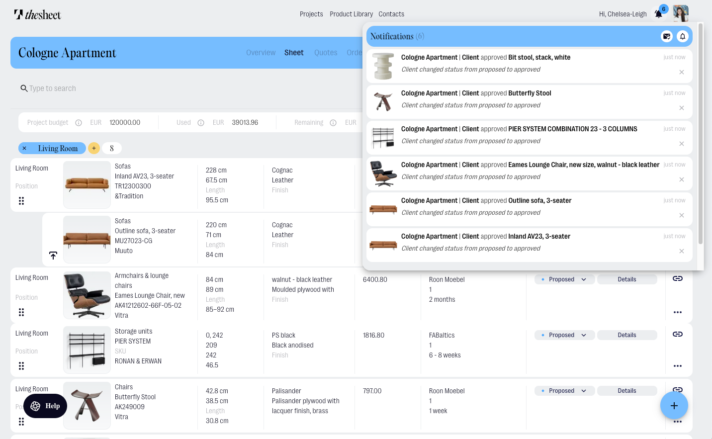 thesheet's notification system keeps you informed of all client activities within your projects, including: