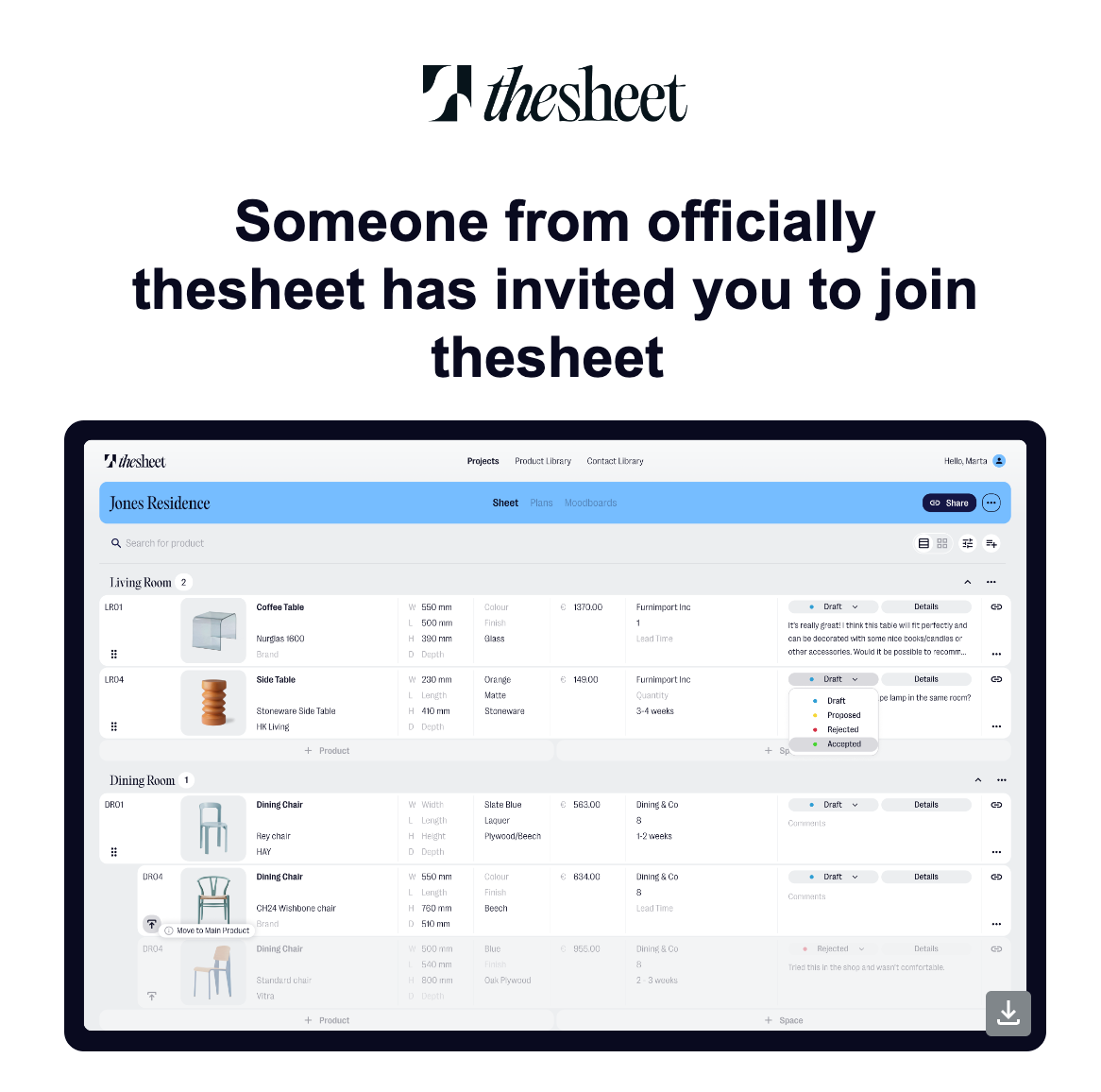 You can easily invite your team or studio members to view and edit your projects within thesheet by sending them an invite to join your studio.