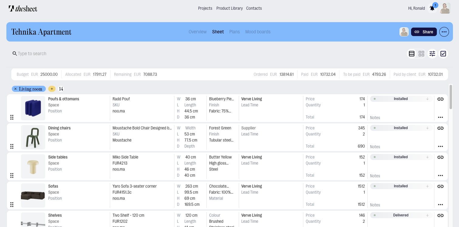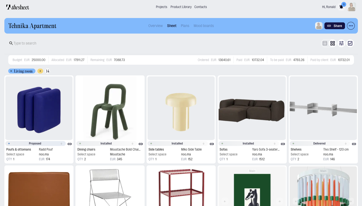 - Scroll through your spec sheet like a mood board to get a visual feel of the furniture and fixtures together.