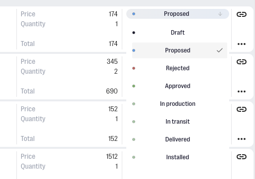 Card view in thesheet focuses on the visuals of the project while still displaying key product information.