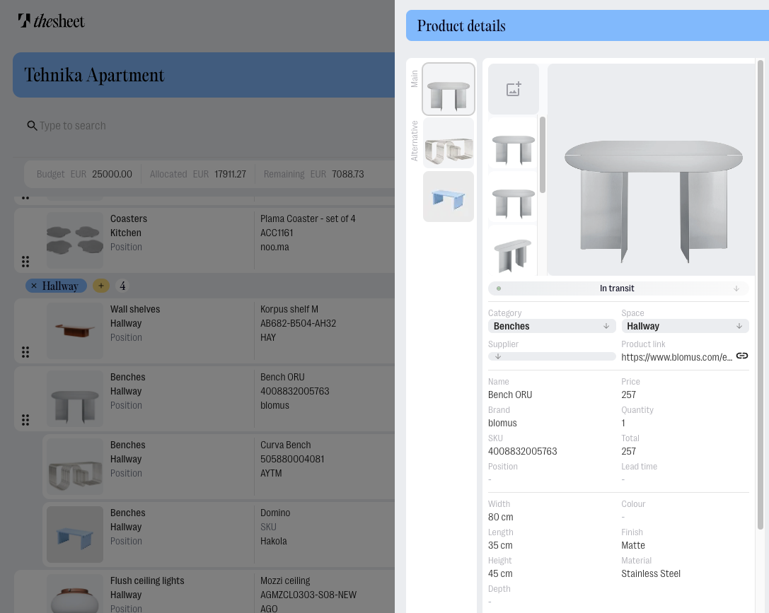 List view in thesheet provides an overview of all the information and specs you need for detailed comparisons.