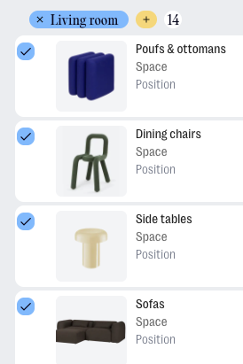 thesheet has six product statuses that help you track each product through various stages in your interior design process: