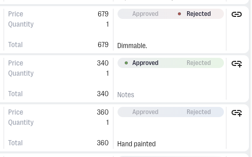 - Approved: Approved products are confirmed by the client and ready to move forward. This status helps you keep track of what’s been signed off and is ready for ordering or production.