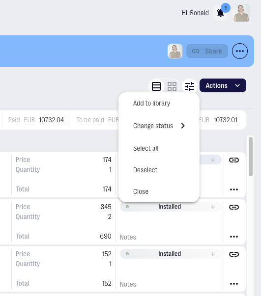 - Click the Actions dropdown > Change status, and choose the relevant status you want to apply.
